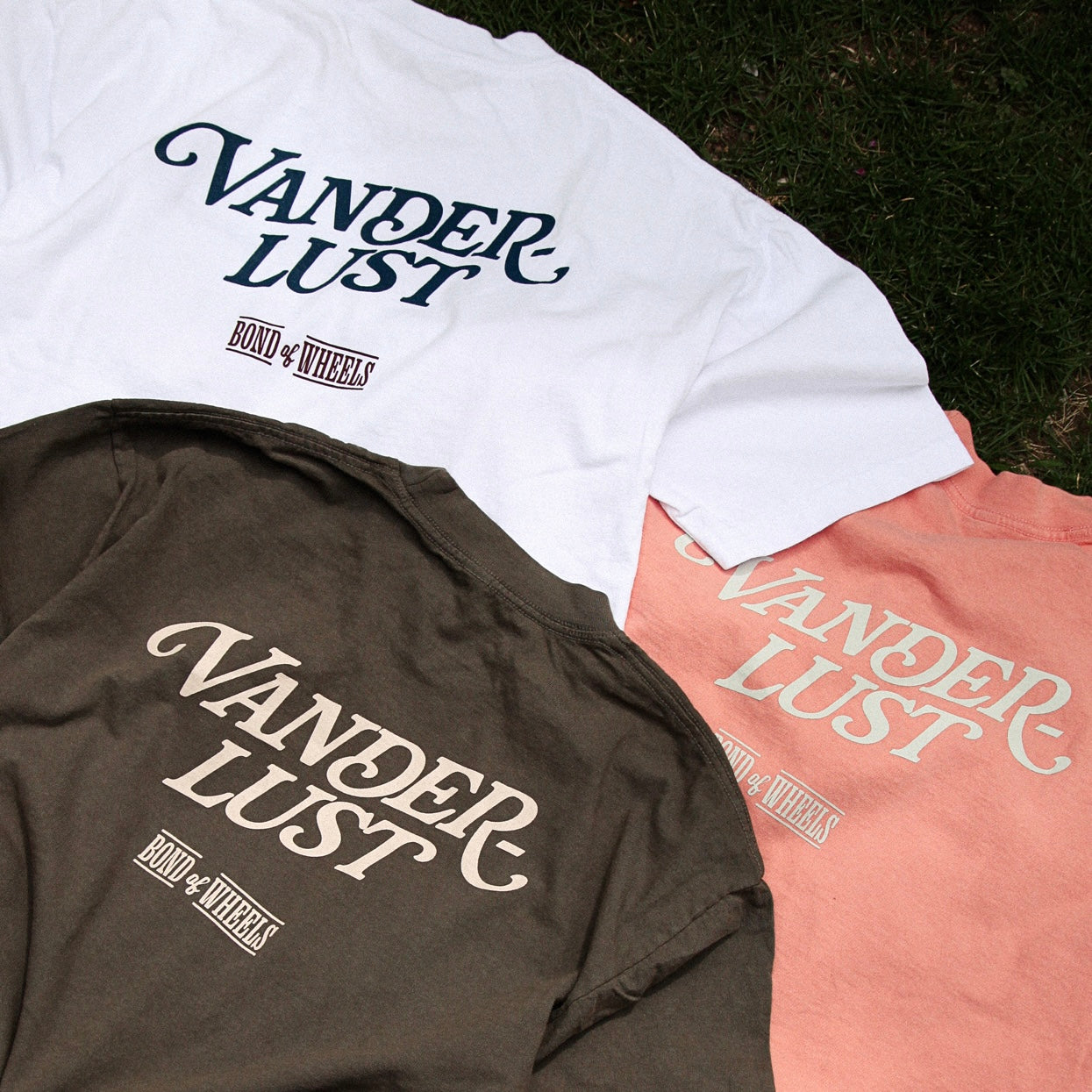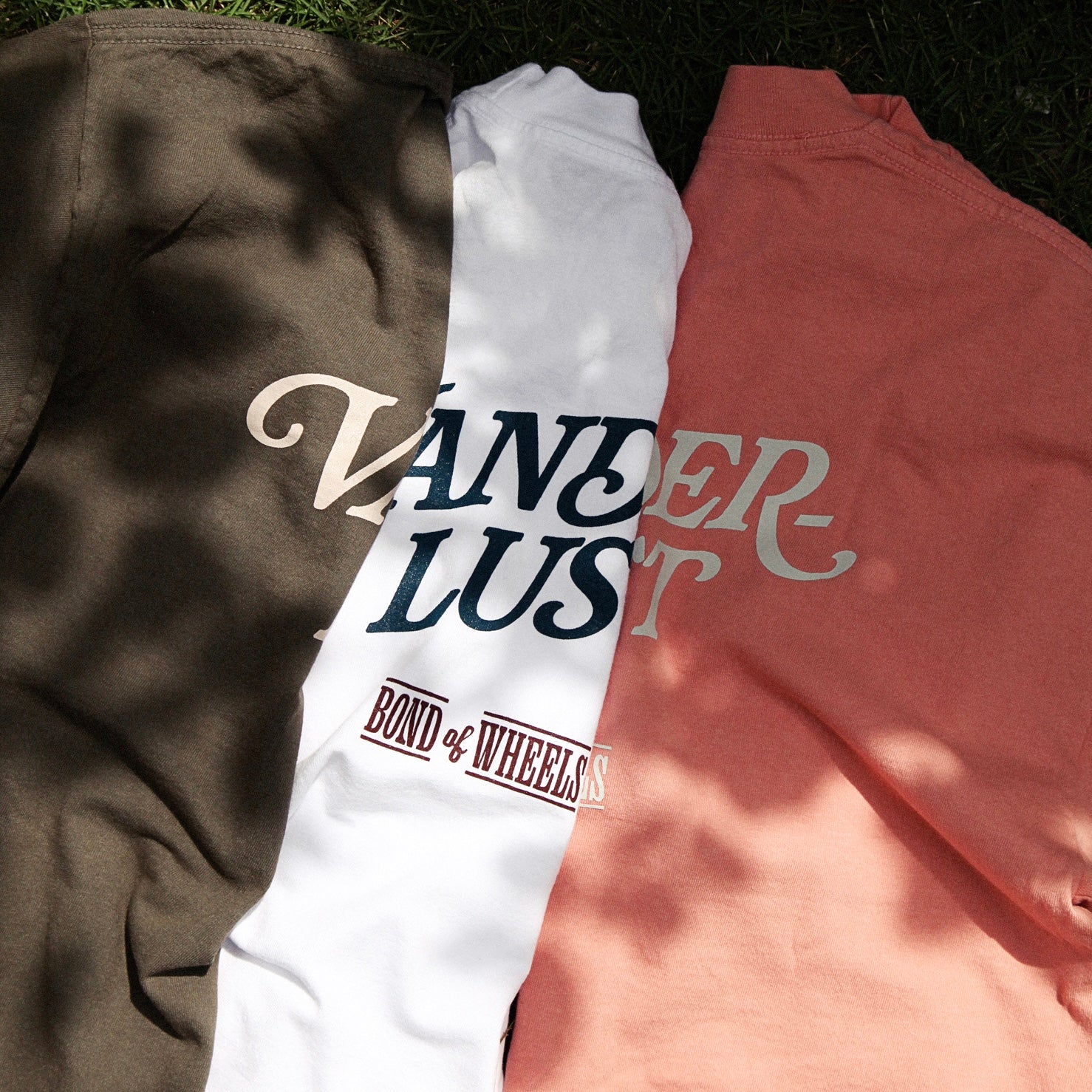 Vanderlust発足2周年を記念したTシャツは、旅にぴったりのワクワクするようなボディカラーを採用。