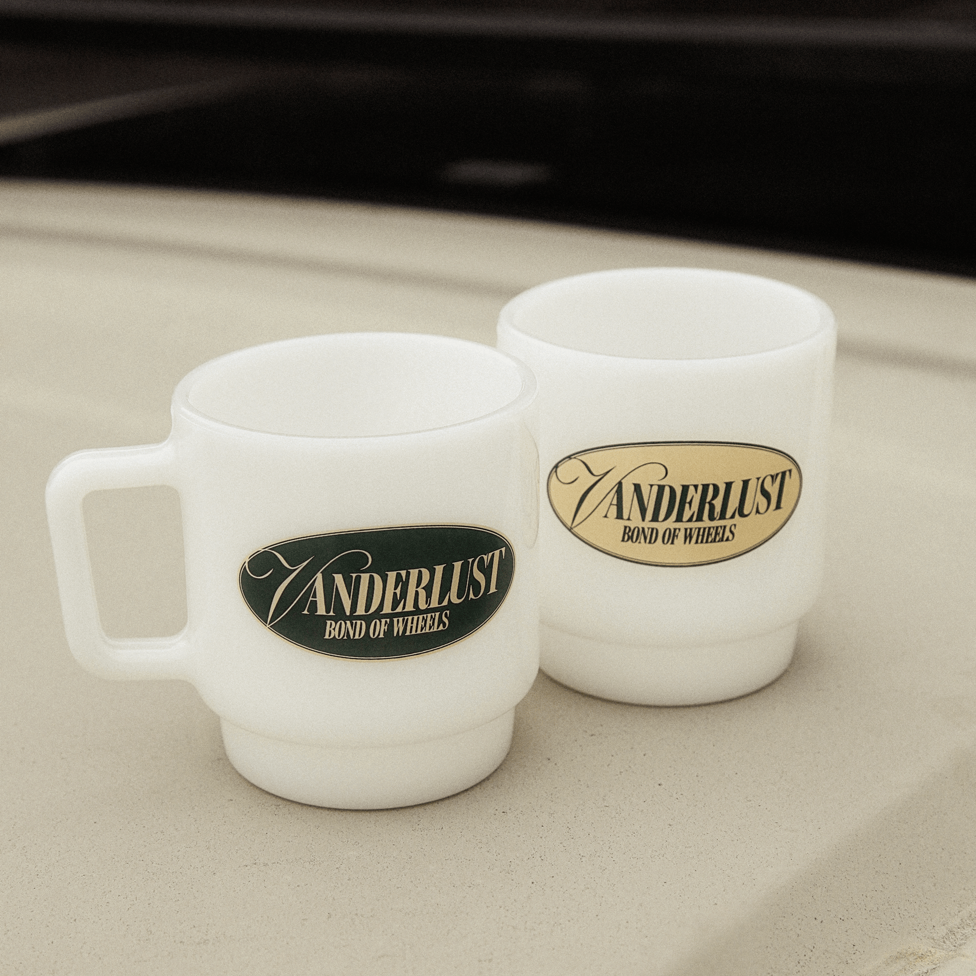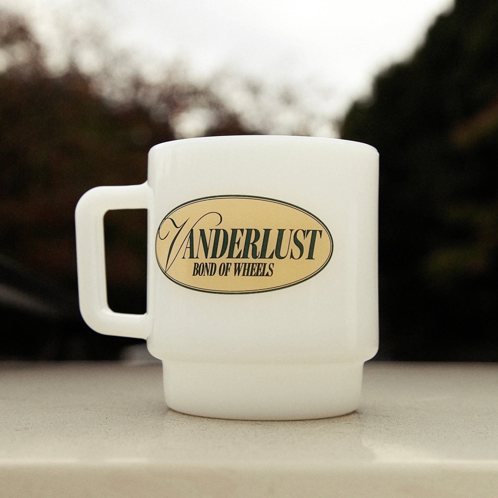 その技術とスピリットを余すことなく注ぎ込んだミルクガラスに、Vanderlustのオリジナルデザインをプリントした一品です。